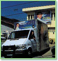 near the Quan Yin truth-sharing car, which carried giant posters of