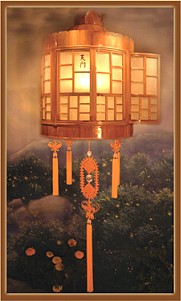 lamp features many strings of tiny bamboo pieces symbolizing raindrops