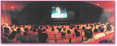 Master’s lecture tapes on the largest TV screen in the hall, local