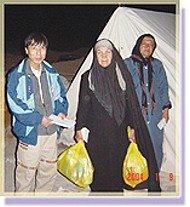 On the second night, the distribution was also carried out efficiently, with more gift packages reaching those in need. During the relief team¡¦s rounds, some recipients rushed out of their tents to thank the workers and God. A few mentioned that The Supreme Master Ching Hai International Association was the only foreign group whose members had personally delivered locally purchased items to the area. Other people slept soundly in their tents, unaware that the team had placed gifts from Master at the entrances.