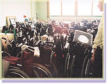 When the relief team members arrived back in Tehran, they learned through the help of the Raad Rehabilitation Goodwill Complex (RRGC), a private social service organization, that wheelchairs with toilet seats were urgently needed by Bam quake victims in Kerman. Thus 72 units were purchased and sent to RRGC for delivery to the city.