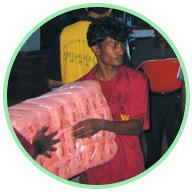 the heavily damaged resort town of Hambantota to distribute a truckload