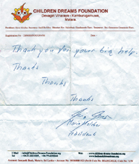 a thank-you letter (picture on right) on the spot for the aid