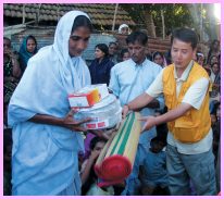 to many local people. In purchasing and packing relief items, the new