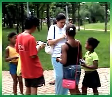 [Goiania] Recently, initiates in Brazil felt very privileged to begin distributing Alternative Living flyers to the public. They handed out the flyers in downtown markets, fairs and parks, as well as workplace settings and throughout their own neighborhoods. Practitioners were also given permission to display the flyers in many of the local schools, libraries and natural products shops. A further opportunity became available when a popular Brazilian radio station, Difusora de Goiania, invited initiates for an interview to talk about Alternative Living’s message of vegetarianism and a more compassionate way of living.
