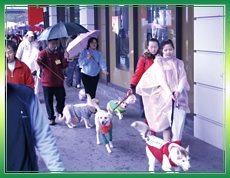 with their vegetarian pets and distribute leaflets along the way.